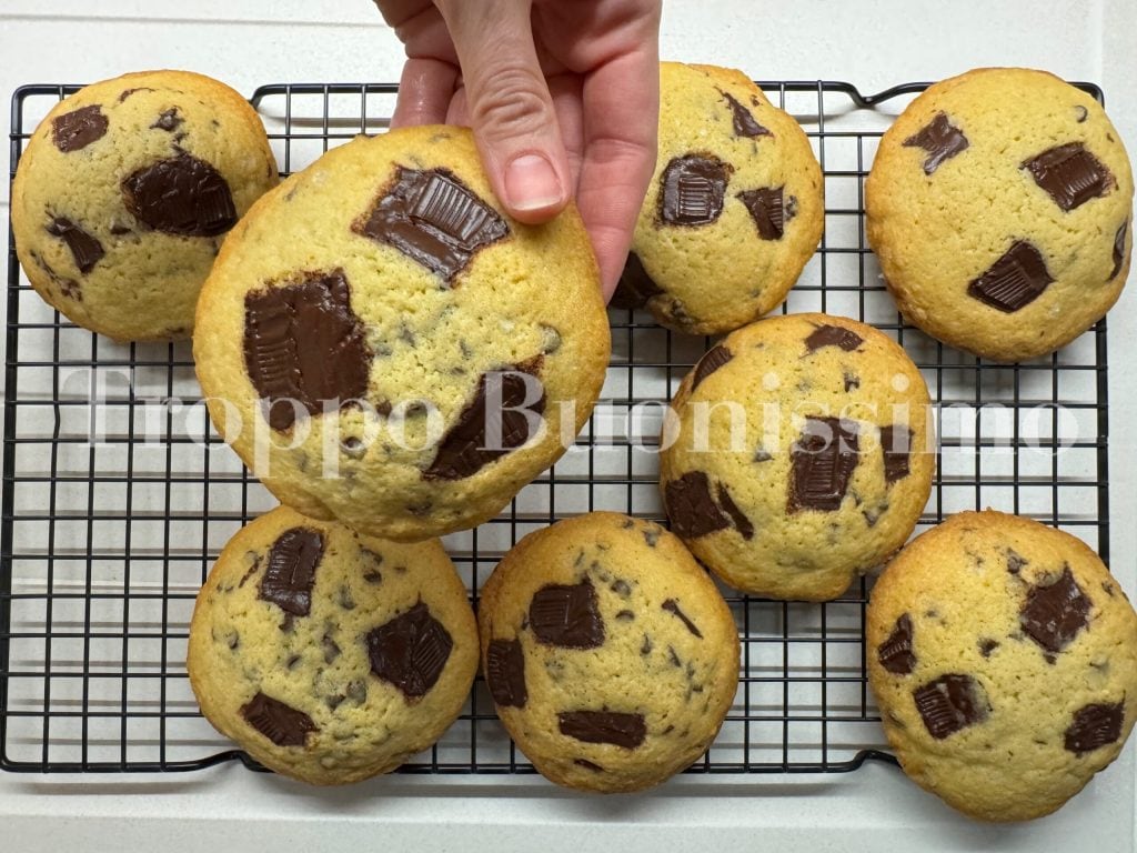 Den Ofen auf 180°C vorheizen und die Kekse 17/18 Minuten backen, bis sie an der Oberfläche goldbraun, aber innen noch weich sind.