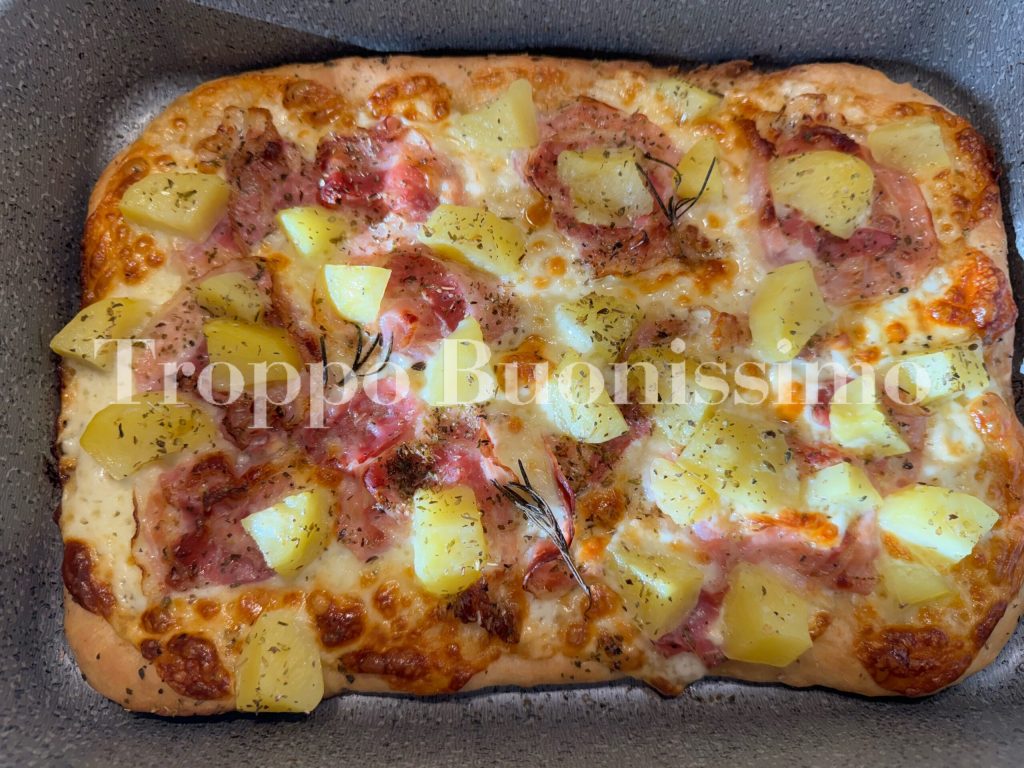 Eine schmackhafte Variante: die schnelle weiche Focaccia mit Instanthefe, angereichert mit Speck, schmelzender Provola und gekochten Kartoffeln. Dieses Rezept ist perfekt für alle, die ein leckeres und sättigendes Hauptgericht suchen, ideal für ein informelles Mittagessen, ein Abendessen mit Freunden oder als köstliche Vorspeise.