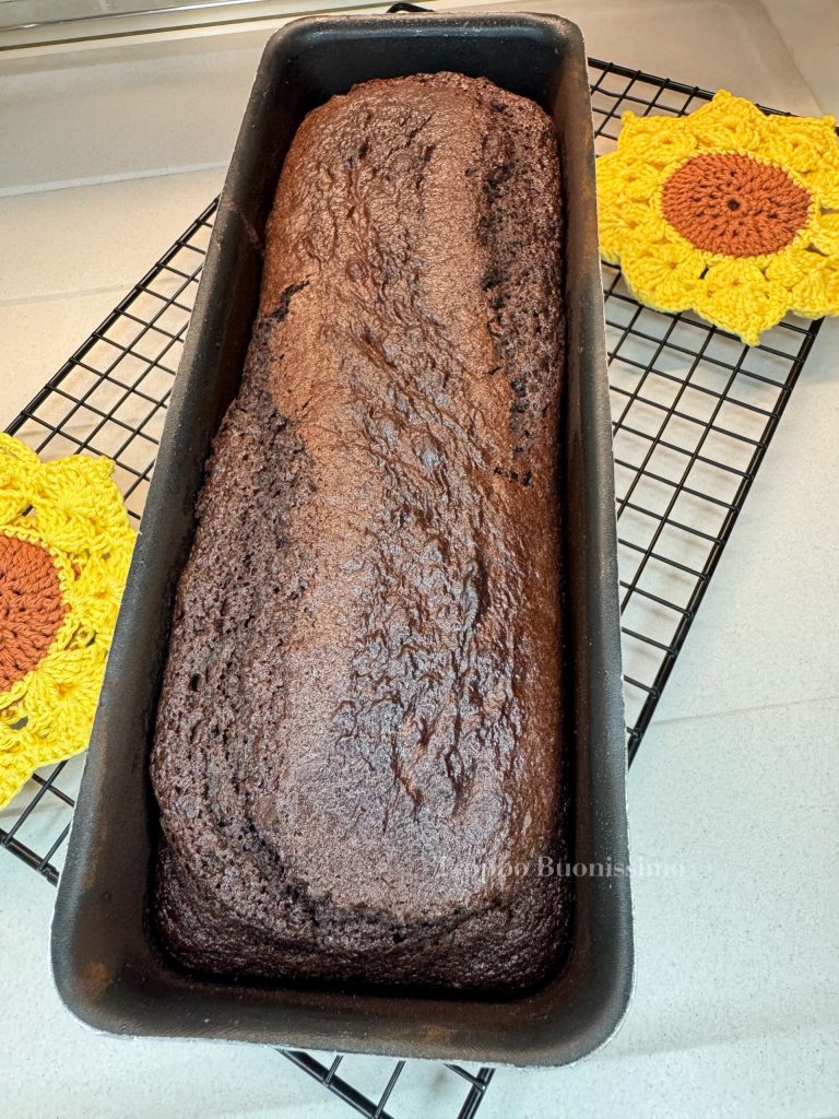 Den Teig in eine gebutterte und mit Kakao bemehlte Kuchenform gießen. Die Oberfläche glätten und im vorgeheizten statischen Ofen bei 180°C etwa 40-45 Minuten backen. Stäbchenprobe vor dem Herausnehmen machen.