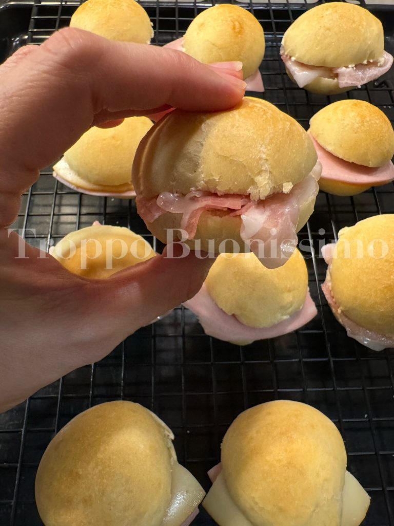 Die Brötchen müssen einfach nur mit Milch bestrichen und im vorgeheizten statischen Ofen auf der vorletzten Schiene bei 200° für etwa 12-13 Minuten gebacken werden.