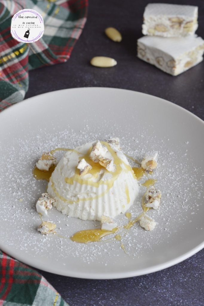 Bevor Sie sie genießen, nehmen Sie sie 10/15 Minuten vorher aus dem Gefrierschrank und garnieren Sie sie mit Torrone-Stückchen und einem Faden Honig nach Belieben.