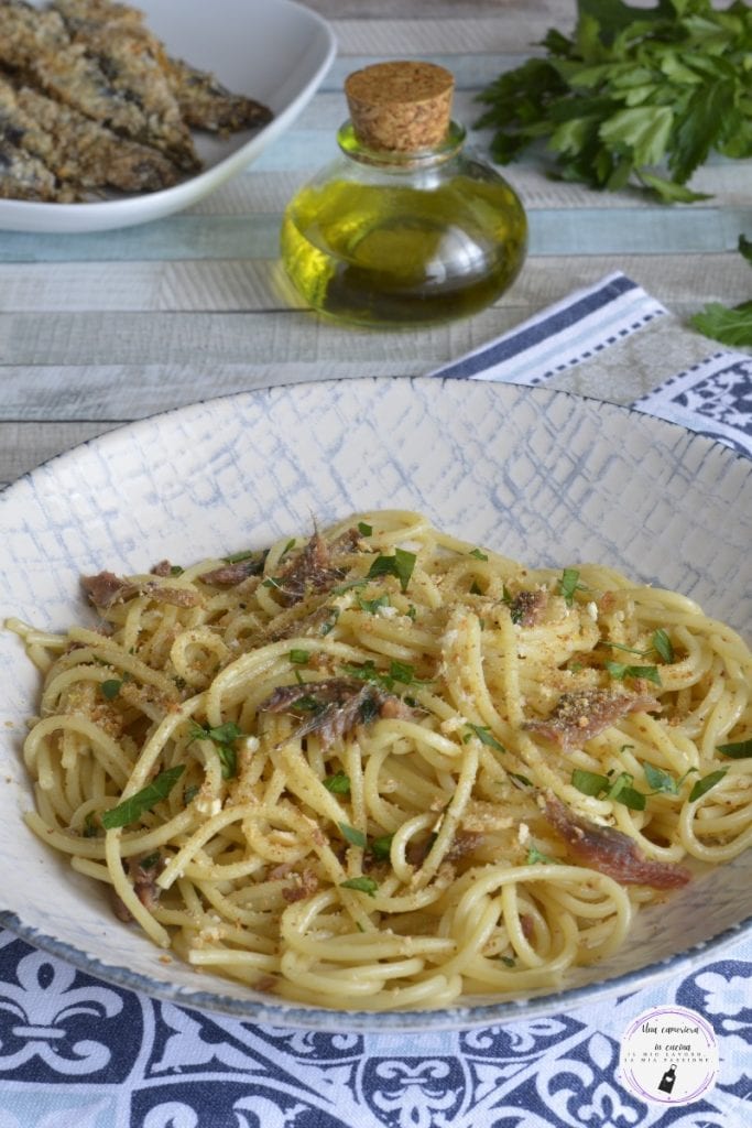 Die Spaghetti mit Sardellen und Semmelbrösel sind ein sehr schnell zuzubereitendes und sehr schmackhaftes Hauptgericht. Dies ist eines jener Gerichte, bei denen man auch dann ein leckeres und günstiges Essen auf den Tisch bringen kann, wenn der Kühlschrank leer ist. Es ist in wenigen Minuten zubereitet, gerade in der Zeit, die die Pasta zum Kochen benötigt. Für das Rezept habe ich Sardellen in Salz verwendet, aber auch die in Öl eingelegten sind in Ordnung. Dasselbe gilt für die Art der Pasta, in diesem Fall Spaghetti, aber wenn Sie kurze Pasta bevorzugen, ist das ebenfalls in Ordnung.