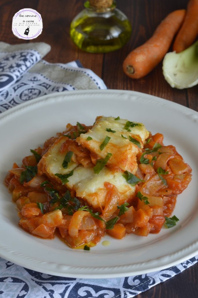 Der Stockfisch in Tomatensoße mit Zwiebeln, bekannt im Lodigiano auch als Kabeljau in Soße oder im Dialekt merluss en cassola, ist ein einfaches und sehr schmackhaftes Hauptgericht. Für dieses Rezept habe ich den Vorgang durch die Verwendung von bereits entsalzten Stockfisch beschleunigt. Üblicherweise wird gesalzener Stockfisch verwendet, der nach mehreren Stunden Einweichen zum Entsalzen zuerst frittiert und dann mit einer Soße auf Zwiebelbasis gewürzt wird. Es gibt zwei Versionen dieses Rezepts, eine nur mit Zwiebeln und Tomaten, die andere mit der Zugabe von Karotten und Sellerie. Es kann einfach so genossen werden, vielleicht mit etwas Brot oder begleitet von Polenta, weich oder gegrillt. Dieses Rezept stammt aus dem Buch“La cucina di Lodi – Le ricette della tradizione” herausgegeben von der APT del Lodigiano. Wenn dir dieses Rezept gefällt und du die anderen nicht verpassen möchtest, folge mir auf meiner Facebook-Seite“Una cameriera in cucina” oder in derdedizierten Gruppe. .