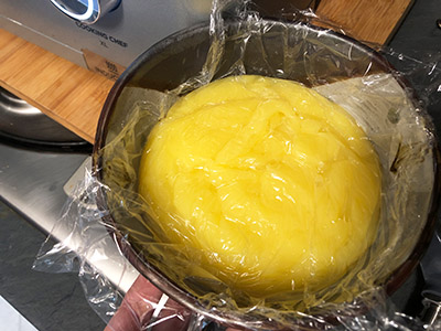 Gib die Creme in eine Schüssel, bedecke sie mit Frischhaltefolie und lasse sie vollständig abkühlen.
