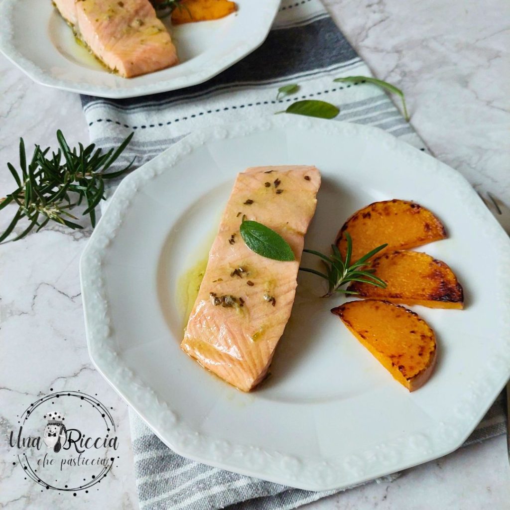 Wenn der Lachs und der Kürbis fertig sind, legen wir sie auf einen Teller und genießen sie, während sie noch heiß sind. Bevor Sie sie jedoch aufessen, machen Sie ein Foto von Ihrem Lachs in der Pfanne und posten Sie es in den sozialen Medien, indem Sie mich taggen (eine Riccia, die nascht Instagram und Facebook) und zeigen Sie mir, welche Beilage Sie für Ihren zweiten Meeresgang gewählt haben.