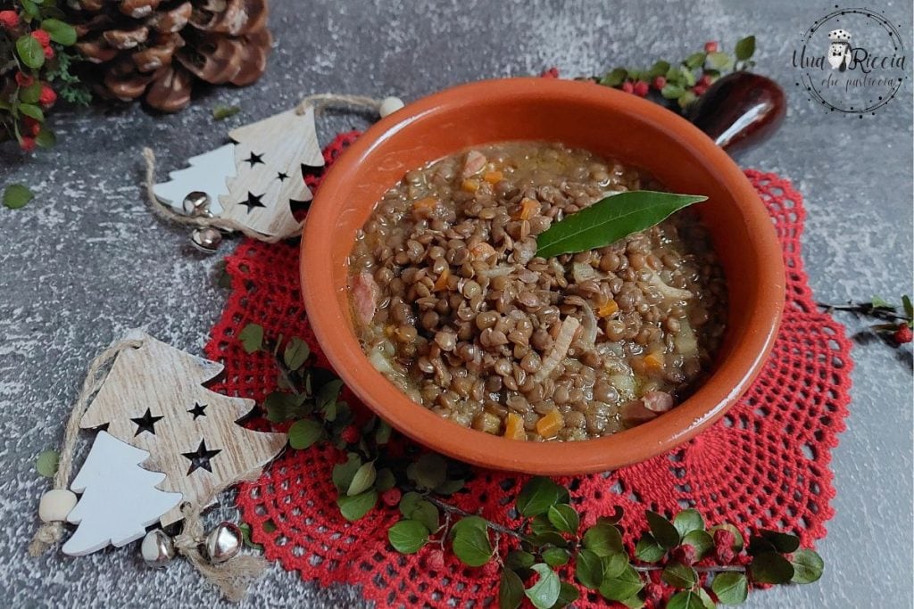 Die Soße, die beim Kochen der Linsen entsteht, lässt sie fast wie eine Suppe erscheinen, und ich bin mir sicher, dass ihr mehr als einen Löffel davon essen werdet, auch weil sie Glück bringen!