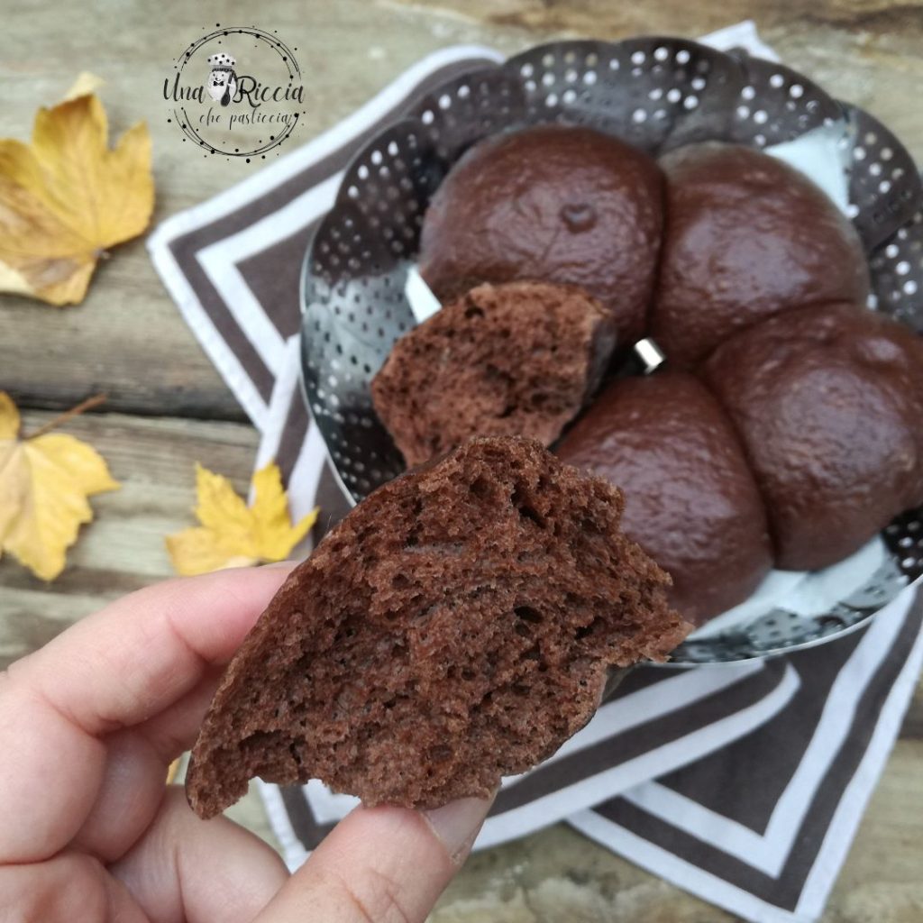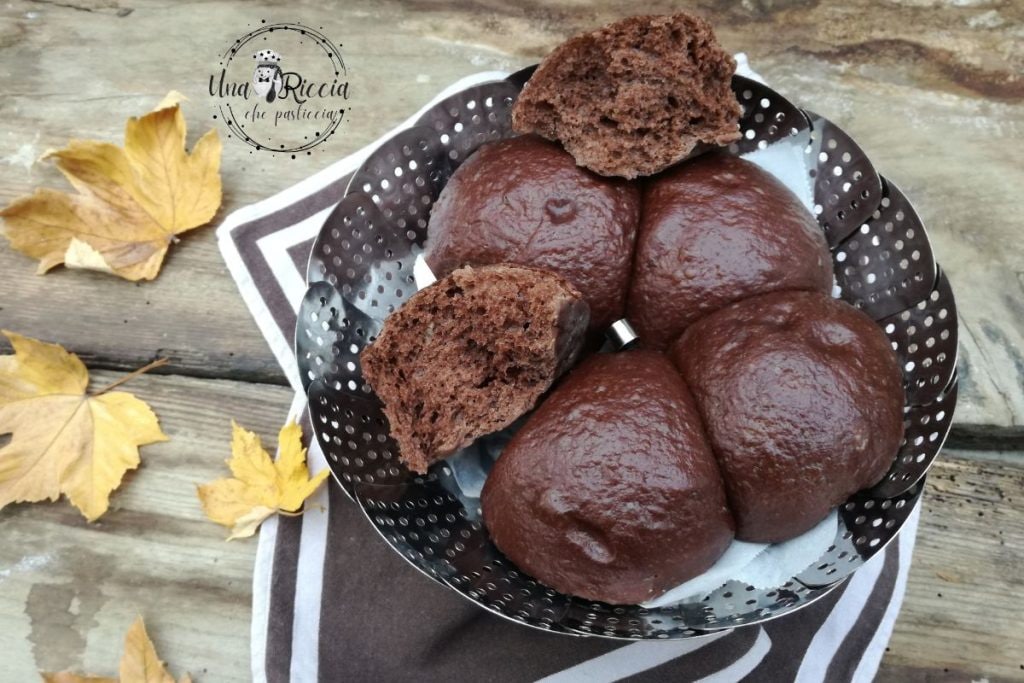 Nach der Zeit sind die gedämpften Kakaobrötchen fertig zum Genießen, sowohl warm als auch kalt. Mach ein Foto von deinen gedämpften Kakaobrötchen und poste es in den sozialen Medien, indem du mich markierst (una riccia che pasticcia instagram und facebook) und sag mir, wie du sie gegessen hast.