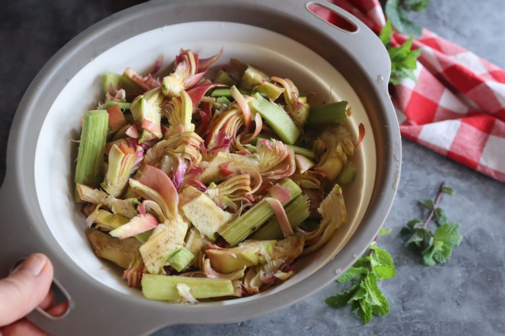 • Wenn die Artischocken fertig sind, lasse ich sie gut abtropfen und auskühlen.
