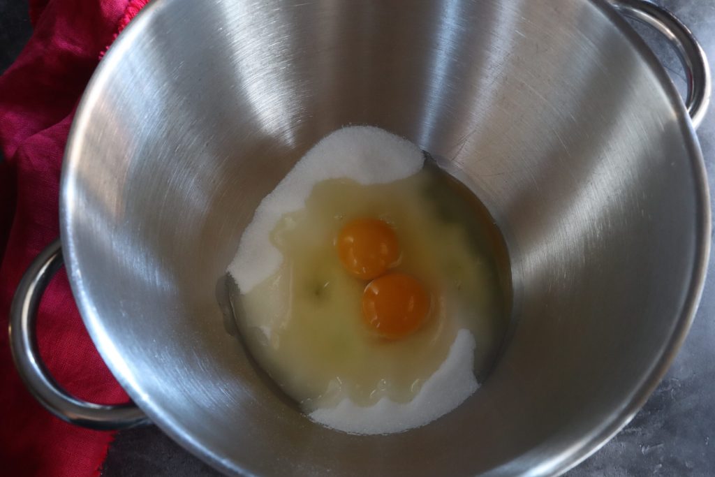 Ich habe die Eier mit dem Zucker geschlagen, bis sie schaumig wurden.
