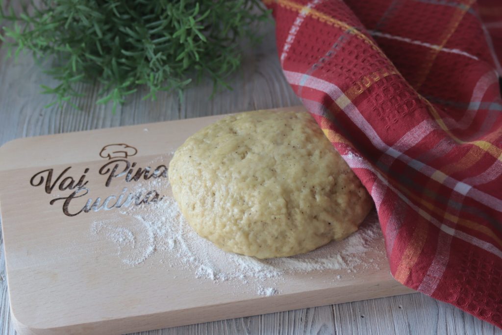 Sieben Sie das Mehl in einem Berg auf einem Teigbrett, fügen Sie 30 g Zucker, einen Teelöffel Kaffeepulver, das Öl und den Wein hinzu. Kneten Sie es, bis es ein homogener Teig wird. Decken Sie es ab und lassen Sie es ein paar Stunden im Kühlschrank ruhen.