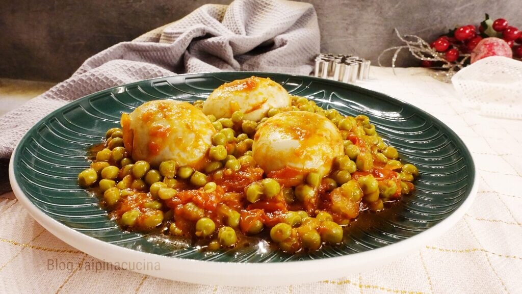 Eier mit Erbsen und Tomaten nach Mamas Art. Das ist eines der vielen Rezepte aus meiner Kindheit, von zu Hause, die Eier, nichts Besonderes! Aber nicht für mich. Dieses Kindheitsgericht bringt mich zurück in die Zeit, als ich klein war und meine Mama das Mittagessen zubereitete. Sie bereitete dieses einfache, schnelle und günstige Gericht zu, mit Zutaten, die besonders auf dem Land leicht zu finden waren, die Eier. Meine Eltern hatten viele Hühner, und Eier fehlten uns sicherlich nicht. Eine außergewöhnliche Frau, die zusammen mit meinem Vater fünf Kinder großgezogen hat, kochte alles Mögliche und das mit Einfachheit und Produkten, die mein Vater anbaute. Eier mit Erbsen und Tomaten nach Mamas Art ist ein einfaches, komplettes und leckeres Gericht, Hauptgericht und Beilage zusammen. Bereitet hier wirklich das Brot vor, viel Brot zum Dippen!
