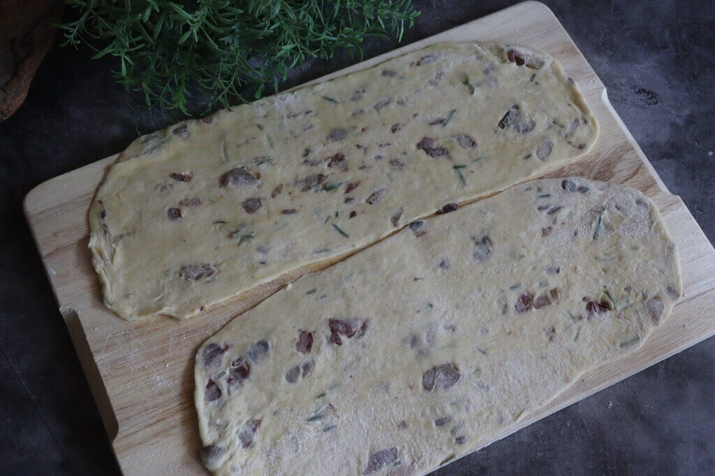 Schritte zur Zubereitung der Fladen mit Oliven und Rosmarin