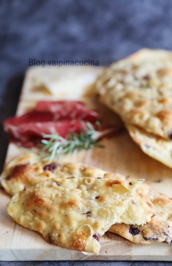 Fladen mit Oliven und Rosmarin, ohne Hefe, wenn du etwas Schnelles und Leckeres möchtest, leg gleich los und bereite die Fladen zu. Meine sind mit Taggiasca-Oliven und frischem Rosmarin, aber du kannst die Zutaten in den Fladen nach Belieben ändern, zum Beispiel mit getrockneten Tomaten oder Kürbis, Salbei und Oregano, oder einfach pur. Wenn du kein Brot zu Hause hast und nicht rausgehen möchtest, um es zu kaufen, kannst du diese schnell selbst zubereiten. Ich mache sie oft als schnelle Snacks oder zu Aperitifs, um Gemüse und anderes mit einem guten Glas Wein zu begleiten.