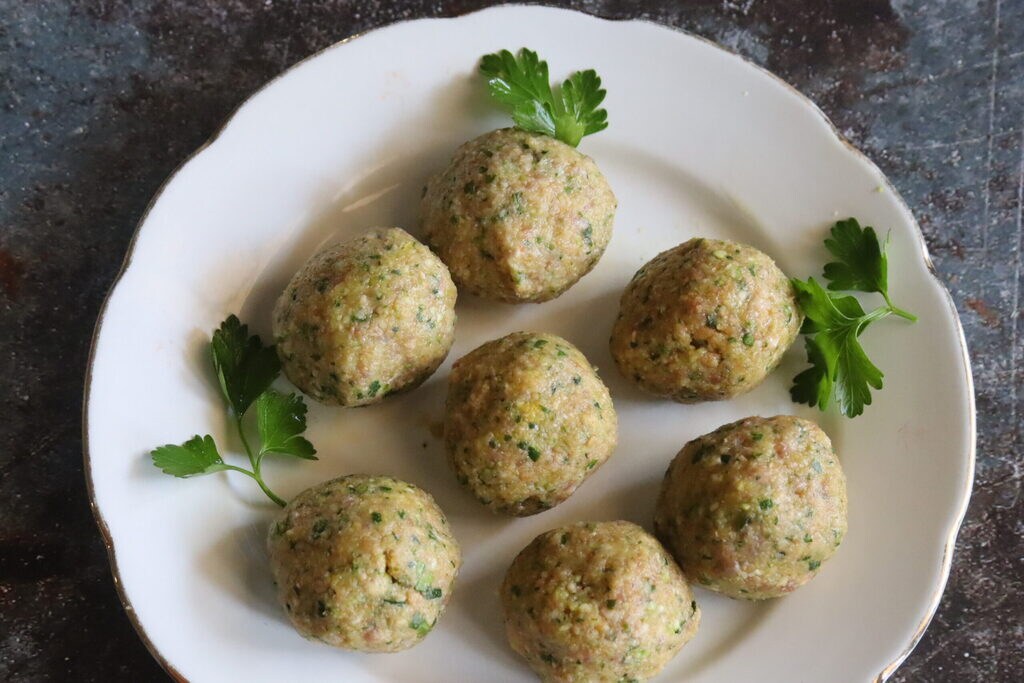 • Formt Fleischbällchen, aus dieser Menge habe ich 10 Stück zubereitet.