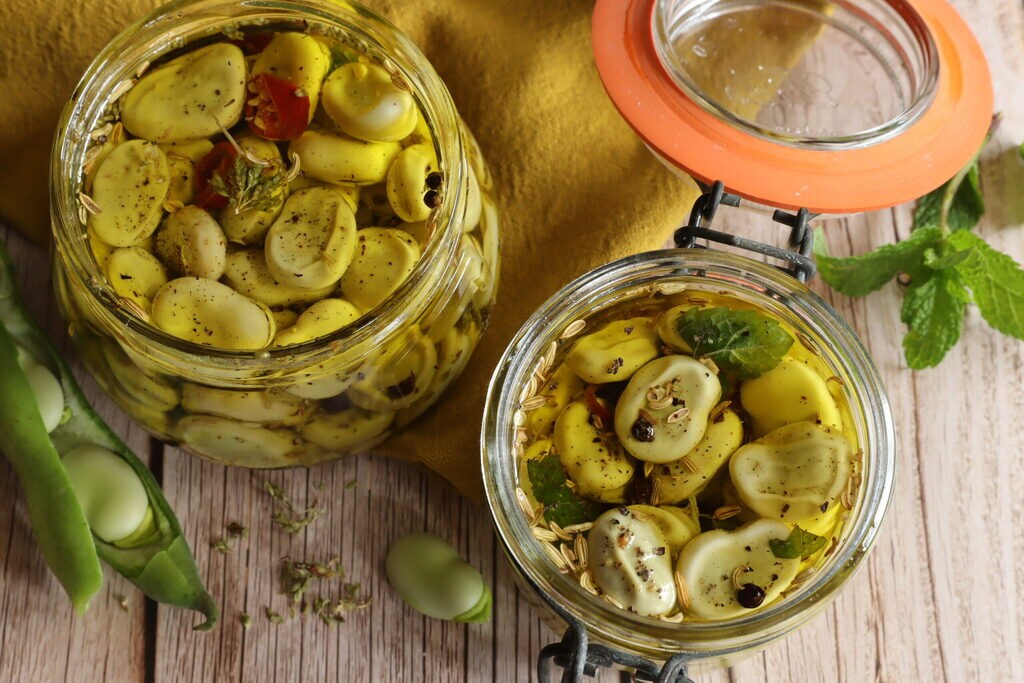 Für Zubereitungen in Öl bevorzuge ich normalerweise natives Olivenöl extra, aber mit frischen Saubohnen habe ich auch Pflanzenöl hinzugefügt.