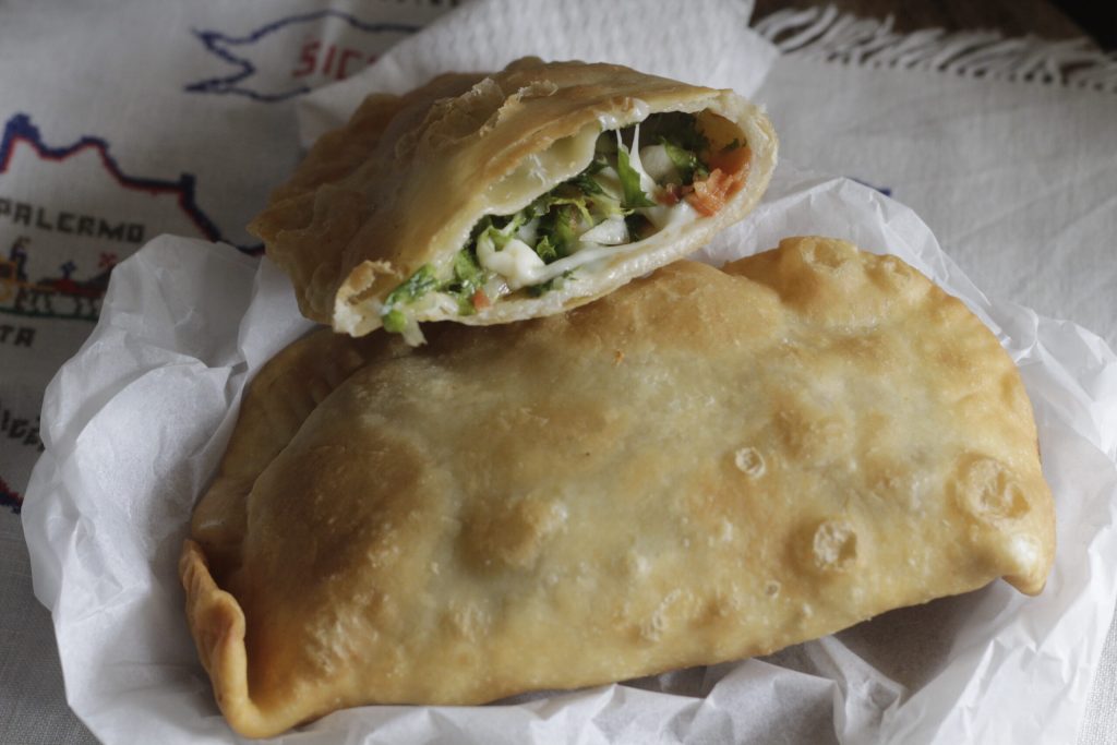 Frittierter sizilianischer Pitone und gebacken. Hand hoch, wer ihn lieber frittiert mag. Alle, und das wusste ich schon, es ist unnötig, es zu verbergen, frittierte Gerichte sind die Favoriten von allen, die leckersten. Offensichtlich auch meine, als gute Sizilianerin. Und ja, ich denke, dass in Sizilien wie in keiner anderen Region Italiens so viel frittiert wird, widerlegt mich, wenn ihr könnt! Also heute frittierter und gebackener sizilianischer Pitone, das Äquivalent zu gefüllten Calzonen. Hier haben wir keine Hefe und müssen nicht stundenlang auf das Aufgehen warten.