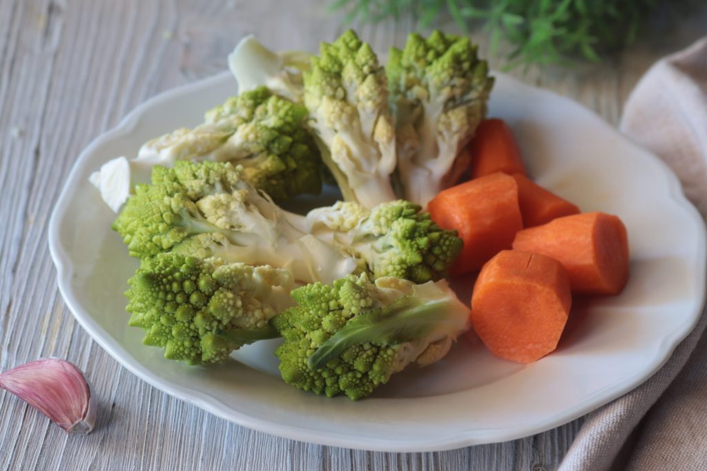 Nachdem ich den Brokkoli und die Karotte gereinigt und gewaschen habe,