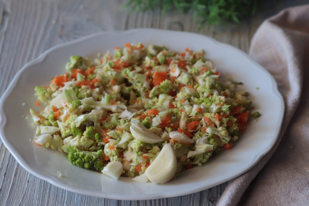 Alles Gemüse in die Pfanne, mit einer Knoblauchzehe dazugegeben, habe ich es für 10 Minuten mit etwas Öl gekocht.