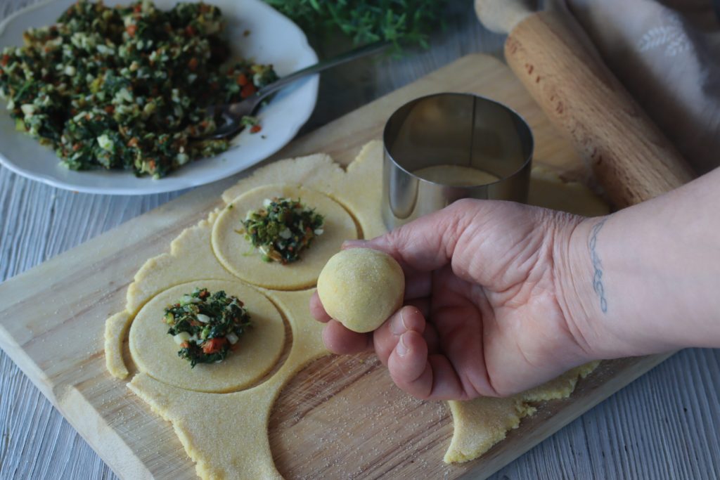 Und hier sind die gefüllten Kartoffeltaschen fertig.