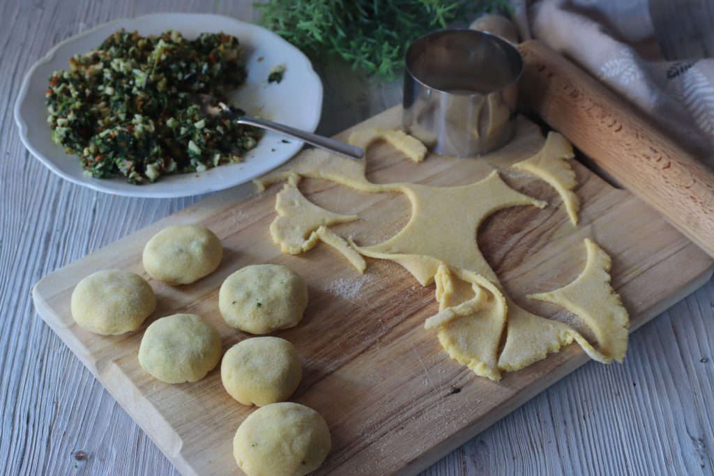 Gefüllte Kartoffeltaschen, ein klassischer und köstlicher Vorspeise, die man auch im Voraus zubereiten und einfrieren kann, um sie später zu verwenden. Es braucht nur wenige Zutaten, Gemüse und Käse und die Vorspeise ist serviert.