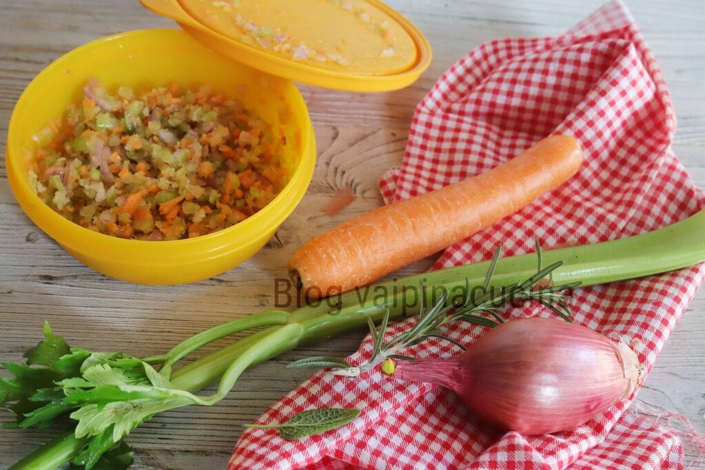 Gemischtes Soffritto, das man mit Karotten, Zwiebeln und Sellerie zubereitet, das wir normalerweise vorbereiten und nicht immer alles sofort verwenden. Meine Gewohnheit in der Küche ist es, immer ein bisschen mehr zuzubereiten und beiseite zu legen, im Gefrierschrank aufzubewahren, wie in diesem Fall. Ich bereite absichtlich mehr von dem gemischten Soffritto zu, als gebraucht wird, um es im Gefrierschrank aufzubewahren und zu verwenden, wenn ich nicht alle Zutaten im Haus habe. Ist Ihnen das schon einmal aufgefallen? Normalerweise, und das passiert nicht nur mir, wenn Sie Sellerie im Haus haben, fehlen Ihnen die Karotten oder umgekehrt, ein Klassiker!