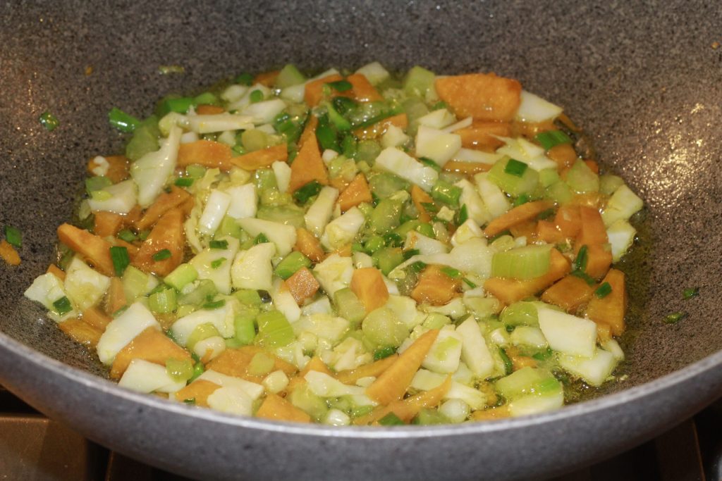 Schneiden Sie den Wirsingkohl in feine Streifen