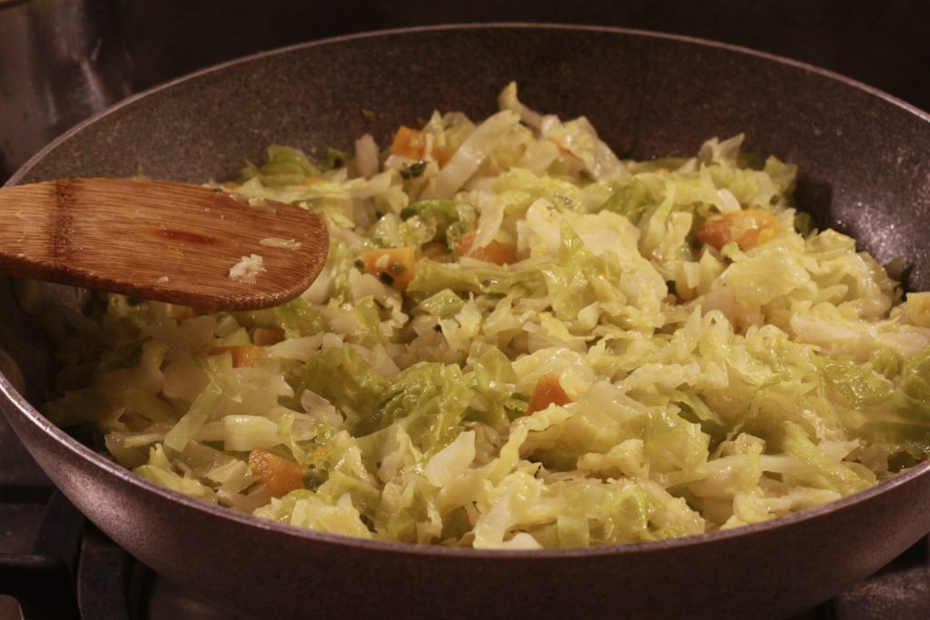 Und fertig ist der geschmorte Wirsingkohl mit Delica-Kürbis.