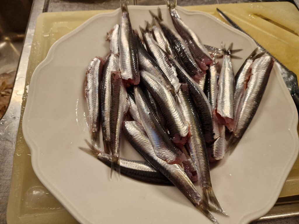 Ja, natürlich, marinierte Sardellen werden mit frittiertem Fisch zubereitet und mit Essig und gekochten Gewürzen gewürzt.