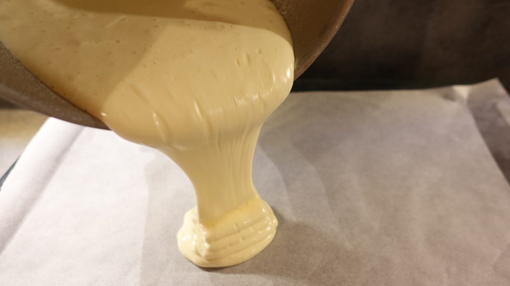 Lassen Sie den Strunk mit dem Backpapier bis zur vollständigen Abkühlung.