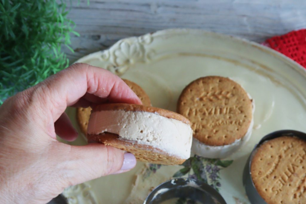 Kaffee-Eis-Keks ohne Eismaschine zubereitet, etwas Leckeres und Frisches, das man alleine mit großer Zufriedenheit und Geschwindigkeit zubereiten kann. Ja, genau, denn die Zubereitung dieses Eis-Kekses ist wirklich sehr schnell. Du brauchst ein elektrisches Handrührgerät mit Becher und Ausstechformen mit 10 cm Durchmesser, genau der Durchmesser meiner Kekse. Natürlich könnt ihr diejenigen verwenden, die ihr habt, aber denkt daran, Kekse mit dem gleichen Durchmesser zu kaufen.