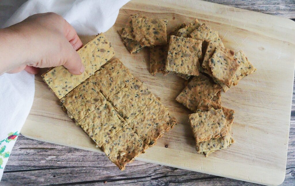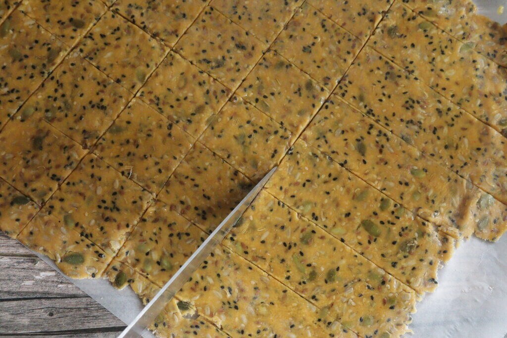 Und hier sind sie, die Kichererbsenmehl- und Samencracker.