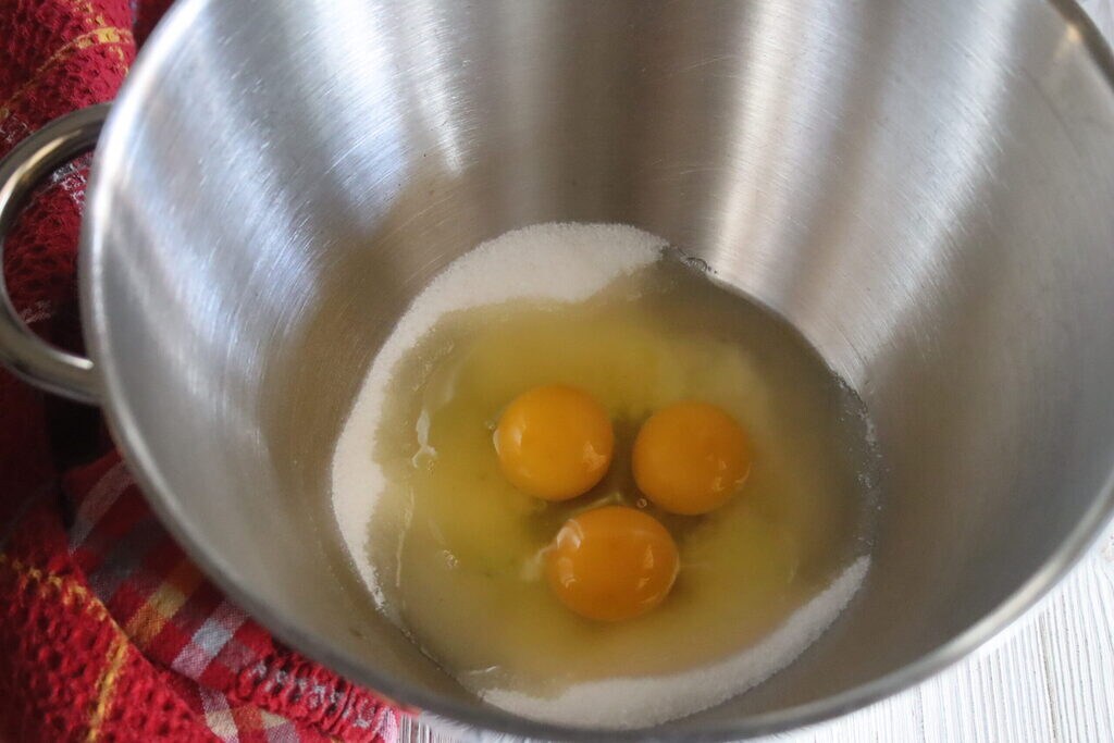 • In der Küchenmaschine die Eier mit dem Zucker für gute 5 Minuten aufschlagen.