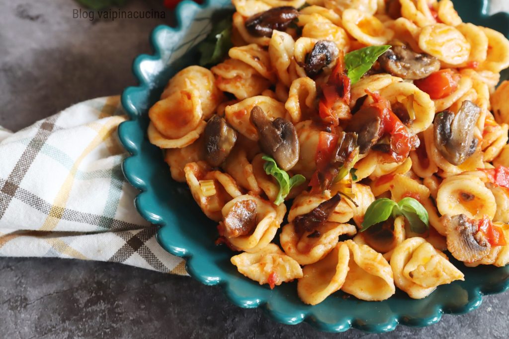 Orecchiette, Kirschtomaten und Champignon-Pilze, die kultivierten, um es genau zu sagen, die in weniger als 5 Minuten gereinigt werden können, nur weil sie außerhalb der Erde kultiviert werden und daher nicht schmutzig sind. Ideal für diejenigen, die es heute eilig haben. Pasta ist mein Wohlfühlessen, und das war bereits klar, aber die frische Pasta aus Wasser und Mehl übertrifft alle. Die frischen Orecchiette haben eine festere Konsistenz: Es ist wirklich schwierig, diese Art von Pasta zu verkochen.
