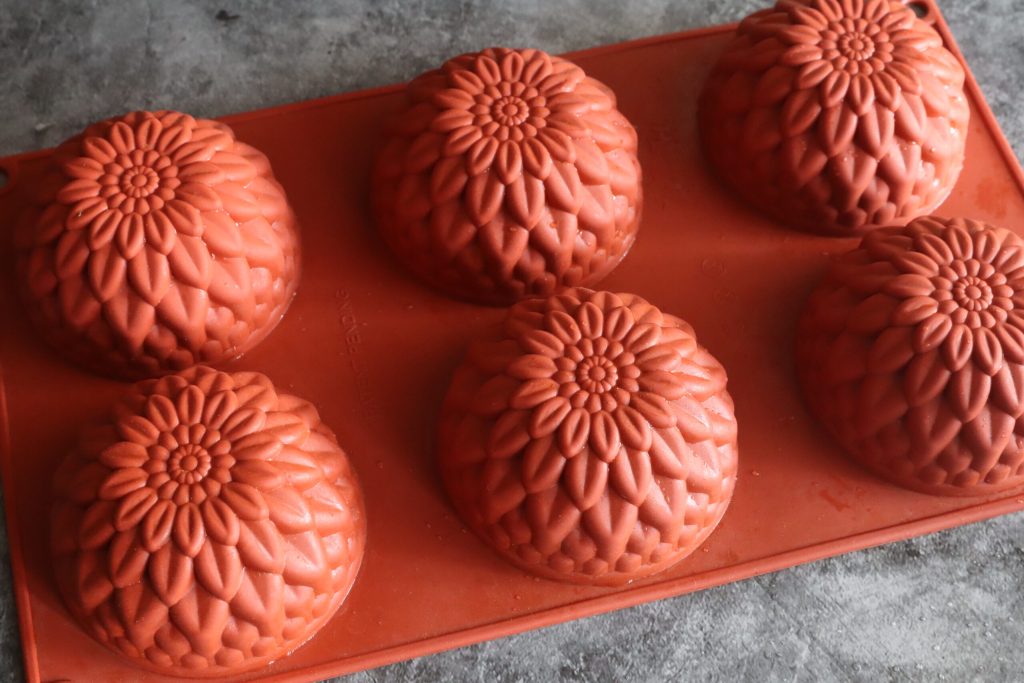 Noch heiß habe ich die Panna cotta in die Silikonform in Blumenform gefüllt.