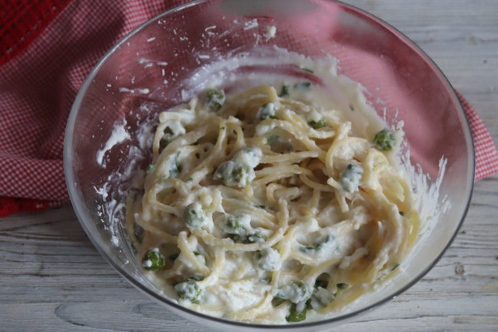 Ich habe den Parmesan mit den Erbsen hinzugefügt.