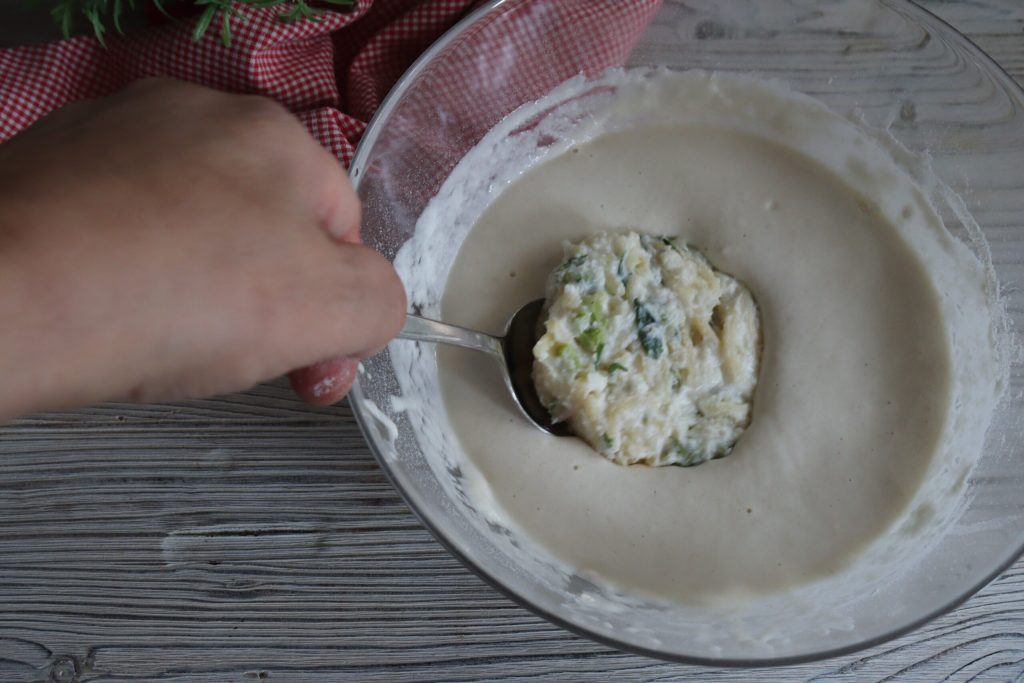 Ich tauche die Frittatine einzeln in den Teig und dann in das Paniermehl.