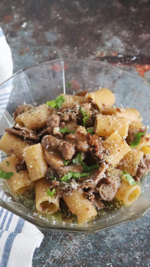 In 30 Minuten fertig, das spezielle Sonntagsgericht Pasta mit Pilzen und Wurst.