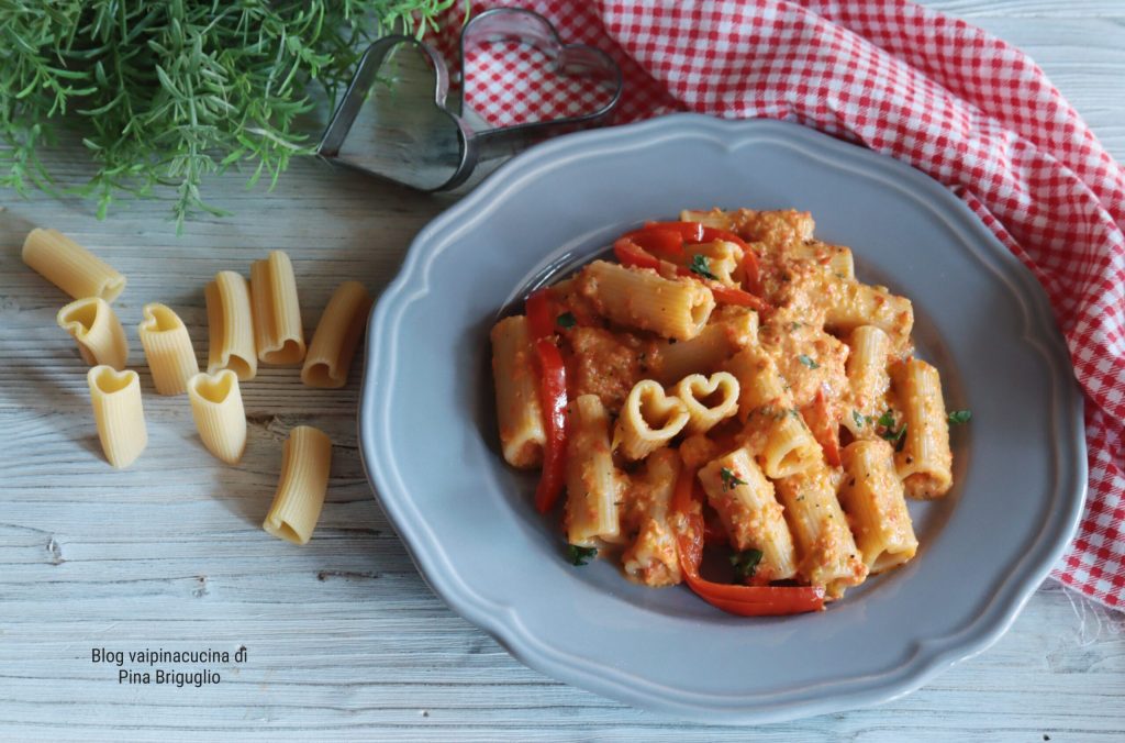 Pasta San Valentino für den Valentinstag, keine Süßigkeiten, sondern eine fantastische rote Pasta mit Paprika, etwas Einfaches, aber gleichzeitig Schmackhaftes. Ein erstes Gericht mit Herzchen-Nudeln, einer herzförmigen Pasta, die Sie in allen Fachgeschäften oder in großen Einzelhandelsketten finden. Mit wenig Aufwand bereitet man es für die ganze Familie zu, denn schließlich ist der Valentinstag das Fest der Liebe, also auch der Familie, dem höchsten Ausdruck der Liebe.