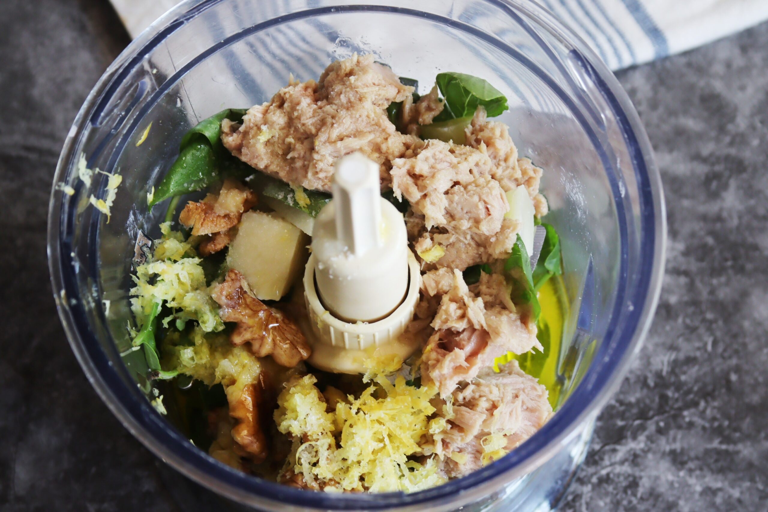 Schritte zur Zubereitung von Pesto mit Thunfisch, Zitrone und Pecorino