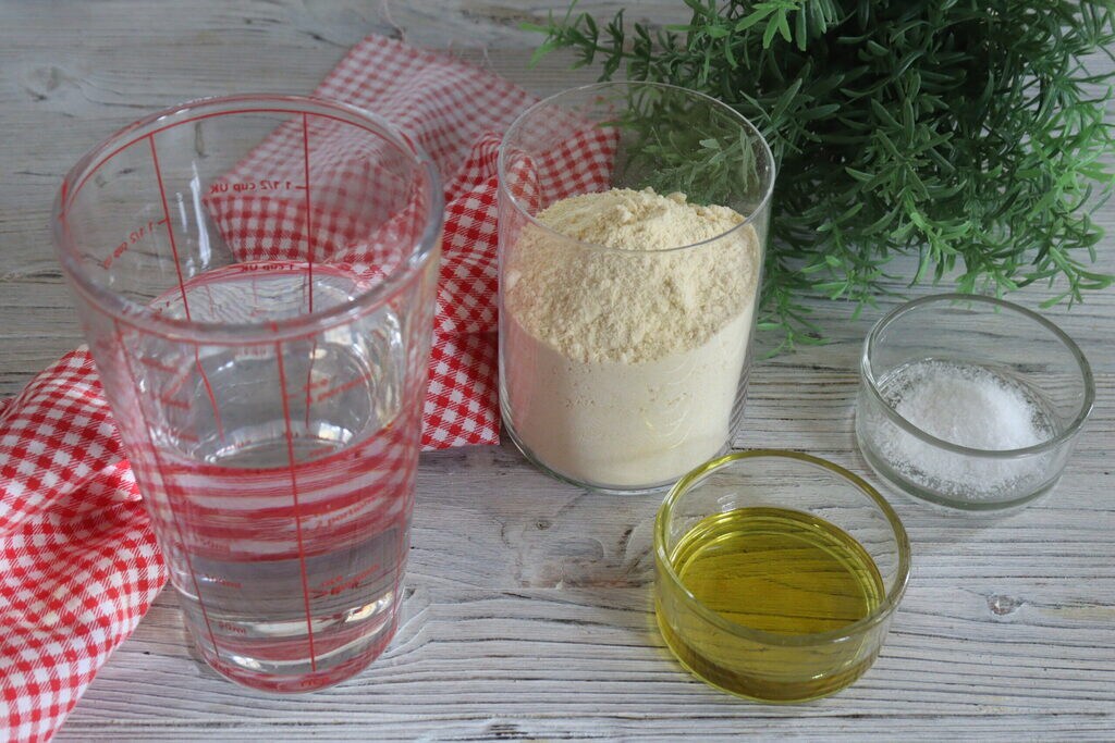Piadine mit Kichererbsenmehl, mit nur zwei Zutaten, Wasser und Kichererbsenmehl. Wie oft ist es Ihnen schon passiert, dass Sie kein Brot mehr hatten und keine Lust hatten, rauszugehen? Daher wird es am einfachsten und leichtesten sein, etwas Leckeres und Glutenfreies zu improvisieren, indem Sie Piadine zubereiten. Also sind sie für alle geeignet, da sie kein Gluten enthalten, wie gesagt, enthalten sie mehr Proteine und Ballaststoffe und haben weniger Kalorien als herkömmliches Mehl, da sie ein länger anhaltendes Sättigungsgefühl geben. Diese Vorteile machen sie sicherlich besonders beliebt bei gesundheitsbewussten Menschen und allen Sportlern im Allgemeinen. Vergessen wir nicht die wichtige Quelle von Vitaminen, die dieses wertvolle Hülsenfrucht enthält, wie Zink, Magnesium, B-Vitamine, A und K, Kalzium, Eisen und Phosphor.