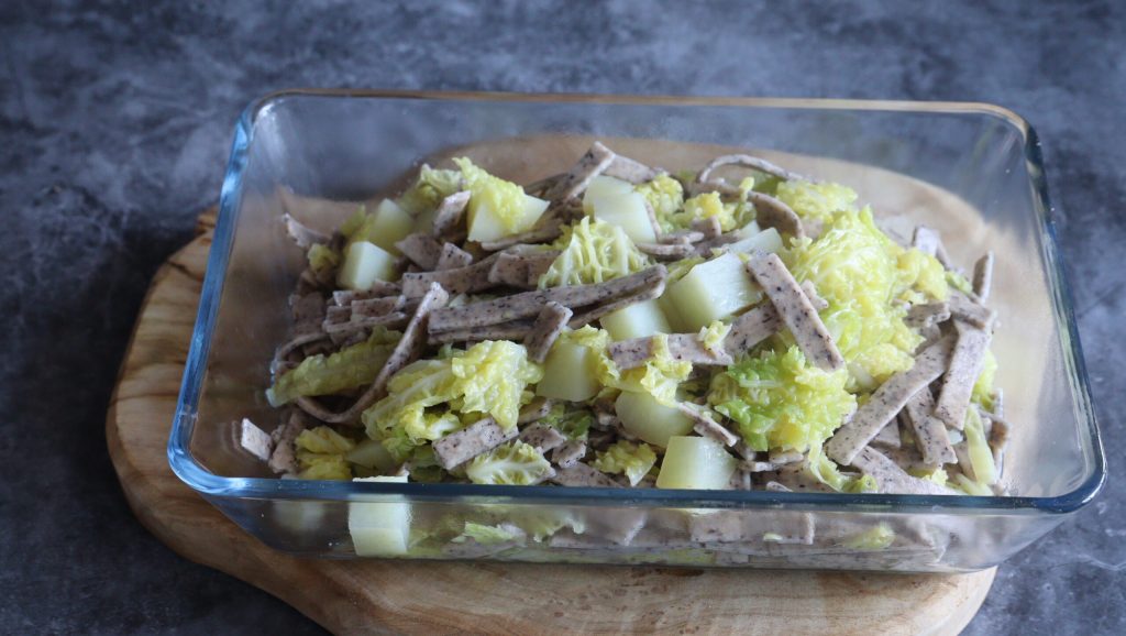 Und hier sind sie bereit, die Pizzoccheri aus der Valtellina in Cookut.