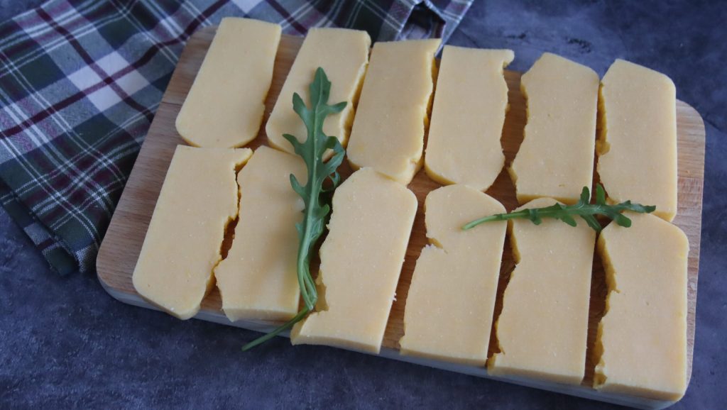 Schneiden Sie die kalte Polenta in nicht zu dünne Scheiben.