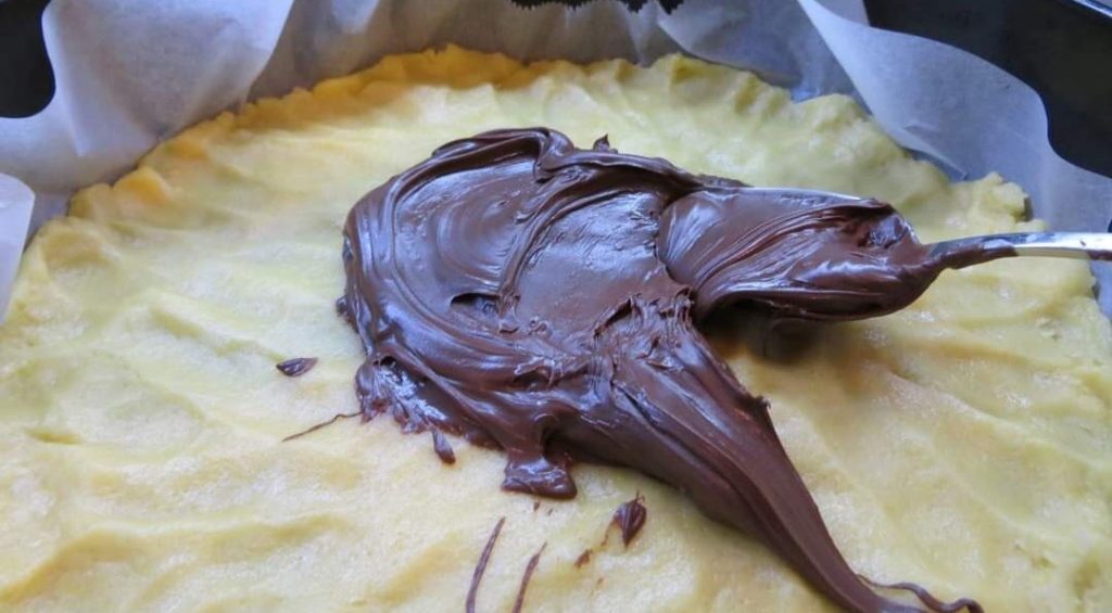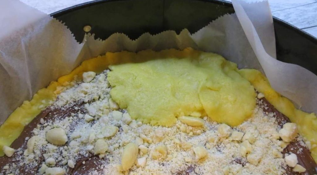Ich bedecke den Mürbeteig mit Nutella