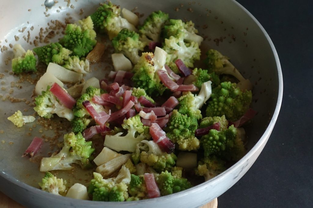 Der Romanesco-Brokkoli mit Speck ist eine ideale Beilage für die Festtagstafel.