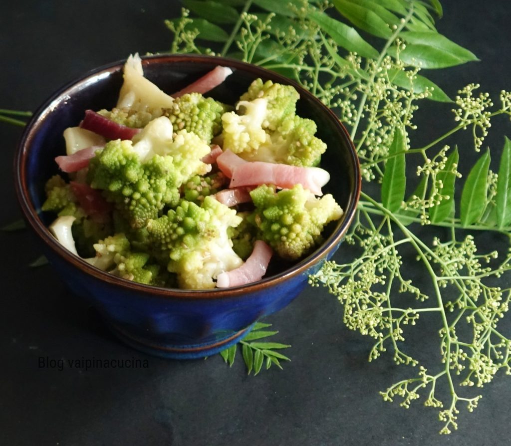 Hier ist der Romanesco-Brokkoli mit Speck fertig, aber wenn Sie den Speck schmackhafter machen möchten, machen Sie die Hälfte knusprig in einer beschichteten Pfanne und fügen Sie es direkt auf dem Teller hinzu, wenn Sie es servieren.