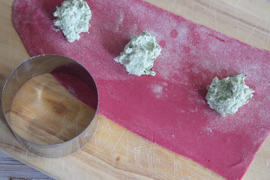 Schritte zur Zubereitung der roten Ravioli mit Butter und Salbei