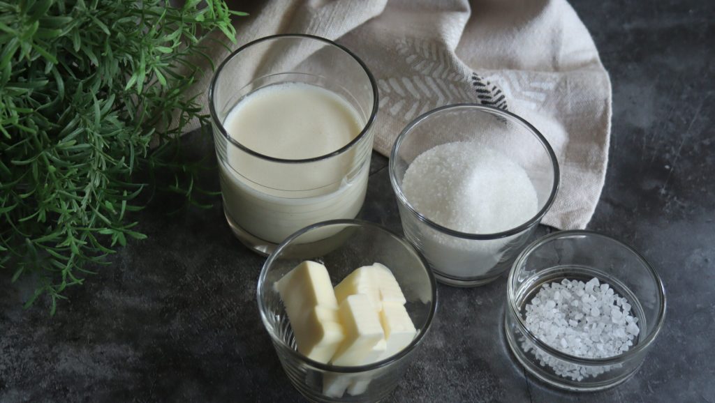 Werkzeuge für die Zubereitung von salzigem Karamell