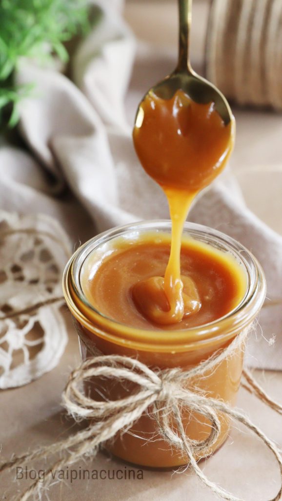 Salziges Karamell für komplexe Zubereitungen und auch pur auf Eiscreme, köstlich, auch so gut, auch pur als Topping auf Eis. Es gibt viele Zubereitungen: Eine könnte der Käsekuchen oder die Panna Cotta sein. Haben Sie es jemals im Kaffee probiert oder einer herrlichen heißen Schokolade hinzugefügt? Man sollte es ein wenig schnell verbrauchen; im Kühlschrank hält es sich etwa zehn Tage in einem luftdichten Glas. Der Erfinder des salzigen Karamells ist der Chocolatier und Konditormeister in der Bretagne, in Frankreich, im Jahr 1960, Henri Le Roux.