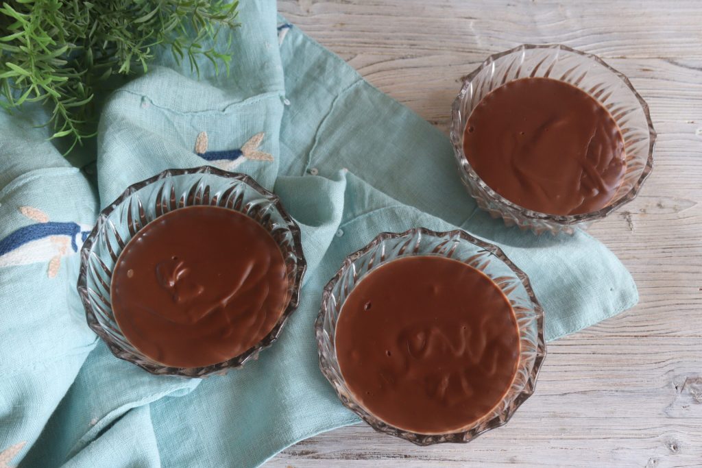 • Die Schokoladenmousse in Schälchen verteilen und abkühlen lassen. In den Kühlschrank stellen, um sie vollständig abzukühlen.
