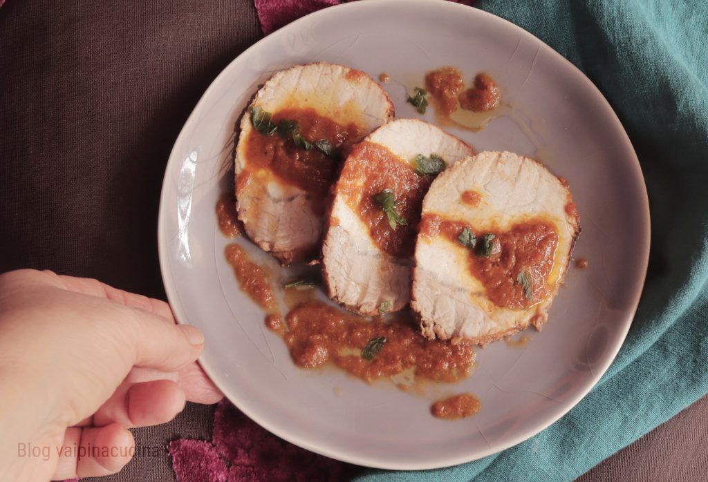 Servieren Sie den Schweinebraten mit der Karottensauce.